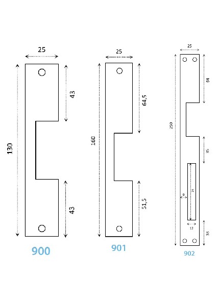 Es posible montar distintas armaduras: modelo 900, 901 y 902 ( ver foto para las medidas )