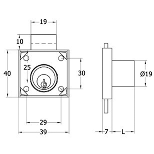 CERRADURA ARMARIO/MUEBLE BYP 138-25 Ø19 L26 CR LLAVES IGUALE