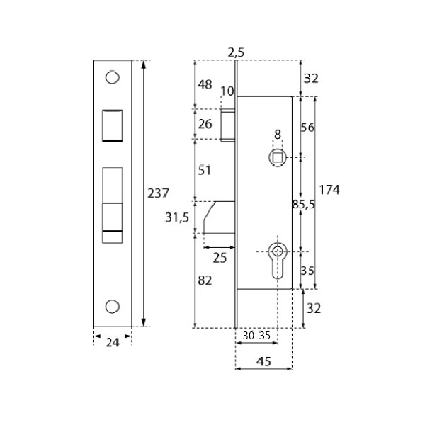 Cerradura de embutir multipunto para carpintería metálica