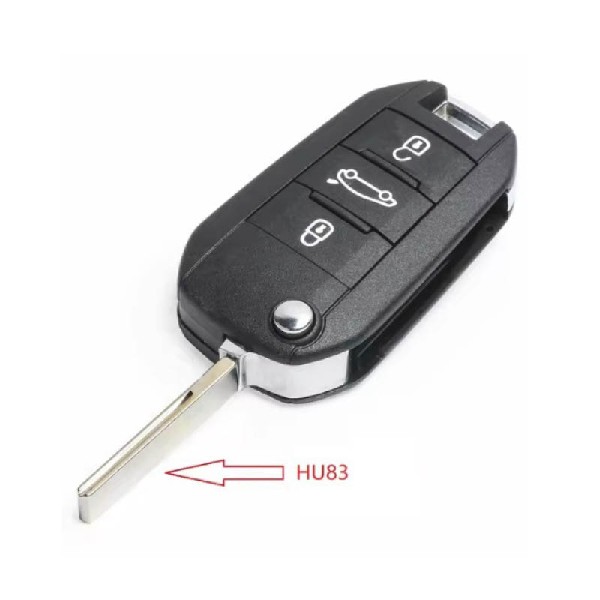 CARCASA CON ESPADIN PLEGABLE (HU83) 3 BOTONES TELEMANDOS PSA MALETERO (PILA EN CIRCUITO)