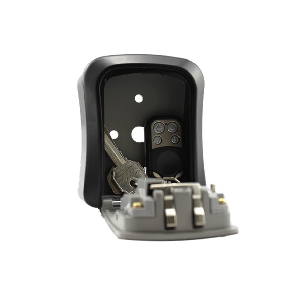 Cofre de seguridad de llave, con cerradura de combinación de 4 dígitos. Instalación en pared.