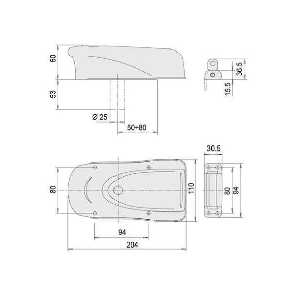 Cilindro 50mm de largo, regulable al centro desde 50 a 80mm.