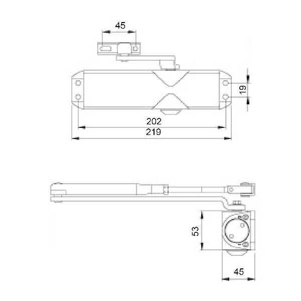 Cierrapuertas de brazo articulado CTB69 color plata.