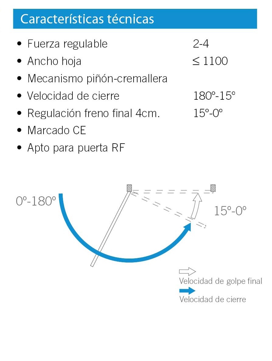 Cierrapuertas con sistema de retención, con una regulación de golpe final y regulación de la velocidad de cierre.