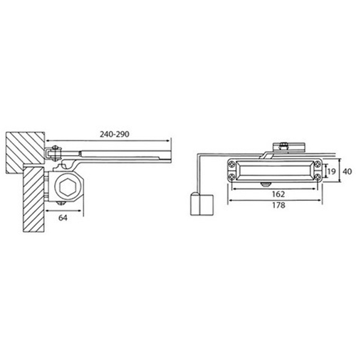 CIERRAPUERTAS BRAZO ARTICICULADO CTBCU50 EN3 SIN RETENCION , COLOR PLATA