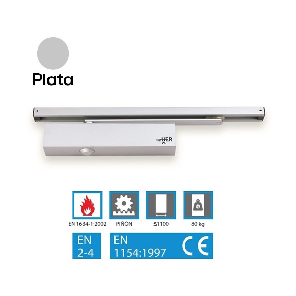 Cierrapuertas de guia deslizante CTG65 color plata.