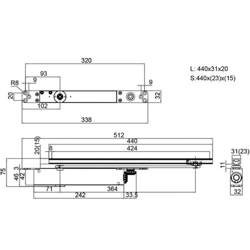 CIERRAPUERTAS OCULTO CTO96 EN2-4 RF SIN RETENEDOR NEGRO