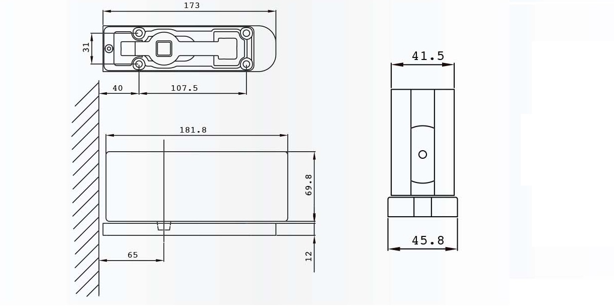 Se recomenienda su instalación en puertas de cristal con ancho de hoja de hasta 1000mm y grosor entre 8 -13,5mm.