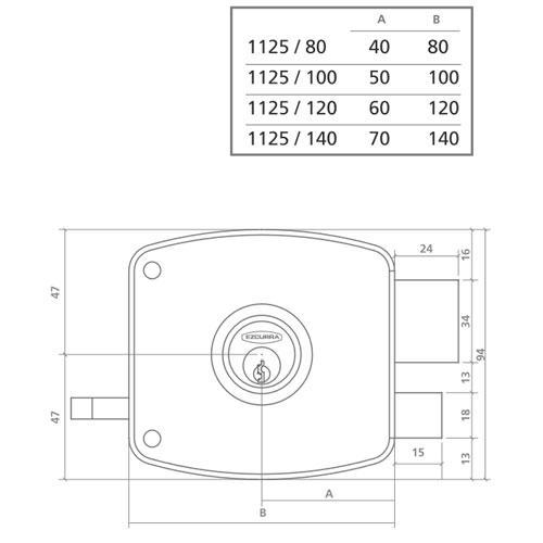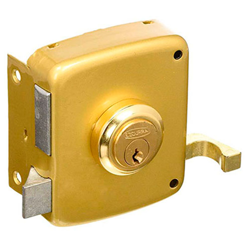 Cerradura Ezcurra 1125-80 de sobreponer con doble cilindro y palanca de acero.