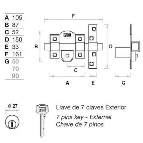 CERROJO FAC 101R/105 LLAVE/PULSADOR PINTADO