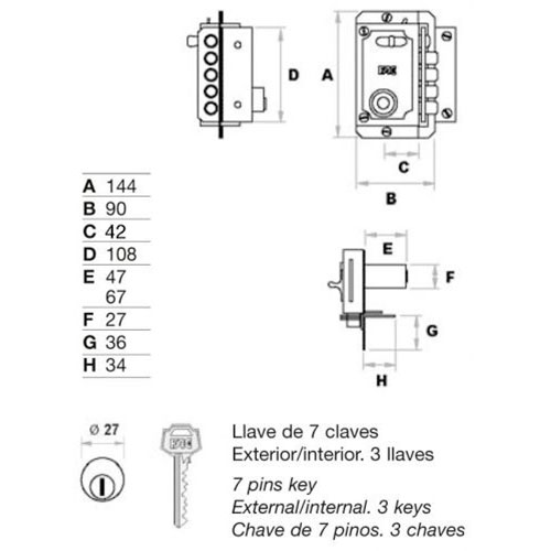 CERRADURA SOBREPONER FAC S90 IZQUIERDA PINTADA
