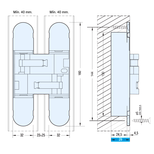 BISAGRA OCULTA GRAN CARGA INTHER ALFA31 120 Kg (3B) CROMO