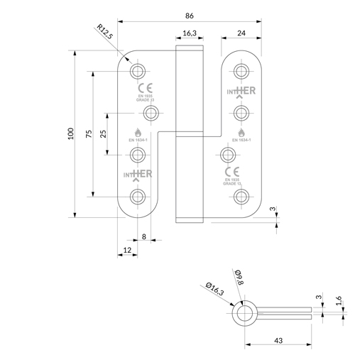 BISAGRA PROYECTO G13 INTHER 1086CR DCHA. 120 Kg LATON SATIN