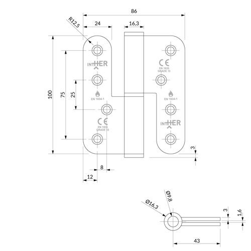 BISAGRA PROYECTO G13 INTHER 1086CR IZDA. 120 Kg NEGRA