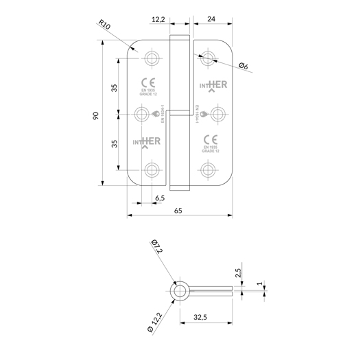 BISAGRA PROYECTO G12 INTHER 9065CRC DCHA. 100 Kg LATON SATIN