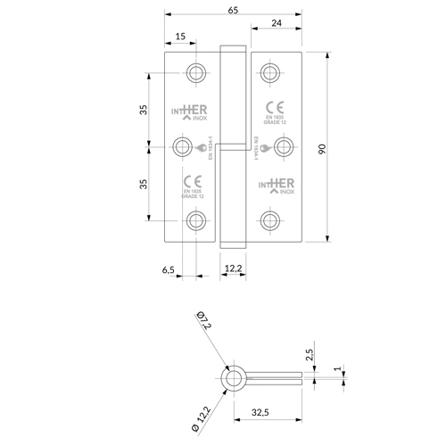 BISAGRA PROYECTO G12 INTHER 9065 DCHA. 100 Kg INOX