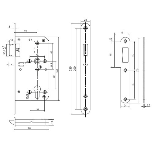 CERRADURA INTHER ANTIPANICO AUTOMATICA DE EMBUTIR 60mm INOX 304 . NO GUARDA MANO