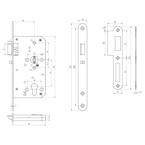 CERRADURA INTHER EMB ANTIPANICO SUPRA 60mm INOX 304 SIN MANO