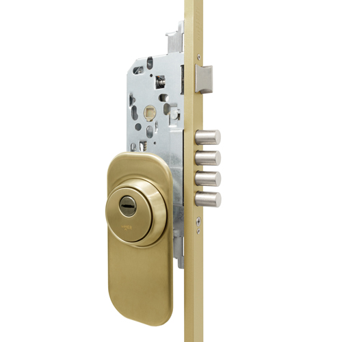 Cerradura de seguridad I-23 de 3 puntos INTHER con cilindro I6-65. Acabado en latón.
