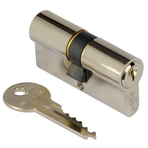 Cilindro de serreta con llave plana reversible ideal para puertas standard.