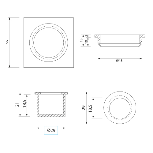 Kit estándar para puertas correderas compuesto por tirador y dedal.