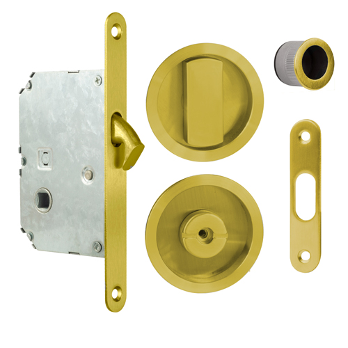 Kit para puertas correderas estándar, compuesto por cerradura, condena, dedal y cerradero.