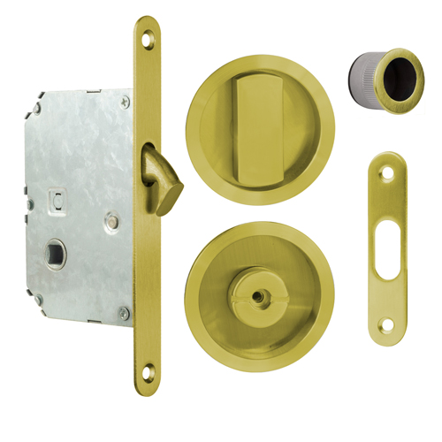 Kit para puertas correderas estándar, compuesto por cerradura, condena, dedal y cerradero.