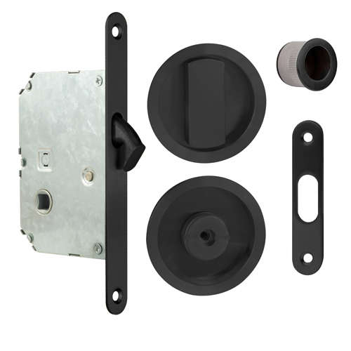 Kit para puertas correderas estándar, compuesto por cerradura, condena, dedal y cerradero.