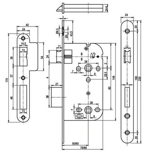 CERRADURA INTHER MEGA CONDENA 344/F20/50 C/R INOX.