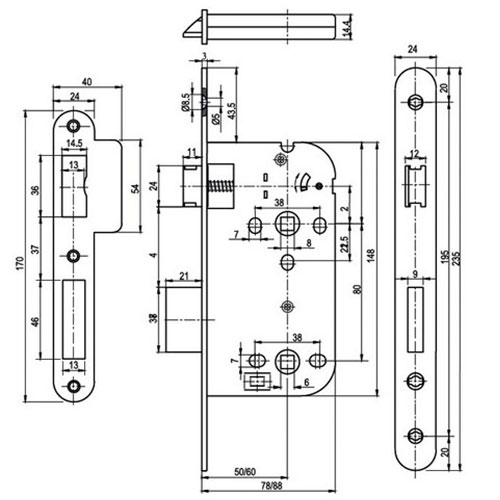 CERRADURA INTHER MEGA CONDENA 344/F24/60 C/R INOX.