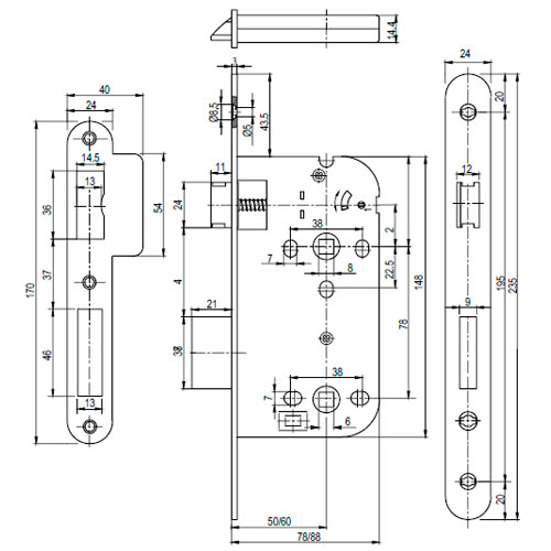 CERRADURA INTHER MEGA CONDENA 344-SIN F24/60 C/R INOX.
