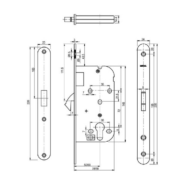 Cerradura recomendada para muy alto tránsito o uso institucional. Inox