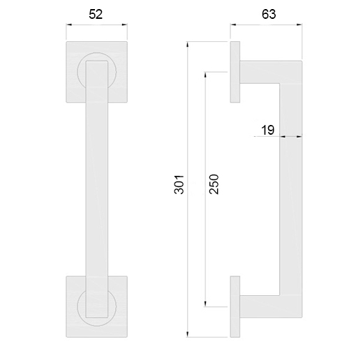 MANILLON INTHER MOD. QUIRON C/ROSETA CUAD. 250 MM INOX 304