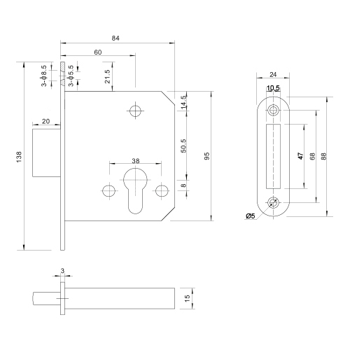 CERRADURA INTHER SUPRA PALETON 5031/F24/60 C/R INOX. SIN CILINDRO