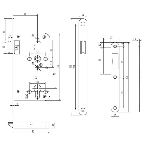 CERRADURA INTHER SUPRA PASO 545/F20/60 C/R INOX. SIN CILINDRO