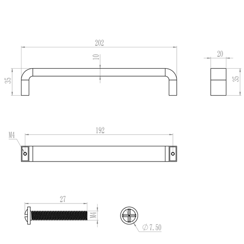 TIRADOR CAJON/MUEBLE INTHER MOD. 1515 204 mm INOX 304