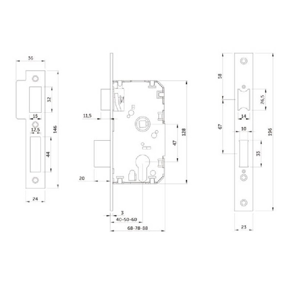 Entrada 50 mm disponible también con entrada de 40 o 60 mm
