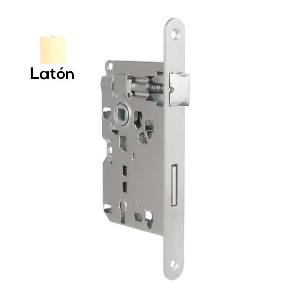 Cerradura U202 embutir, con llave de gorja simple, frente redondo latonado.