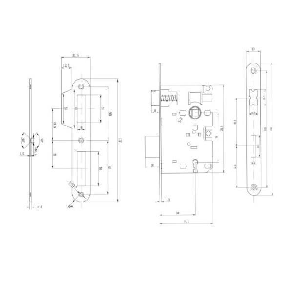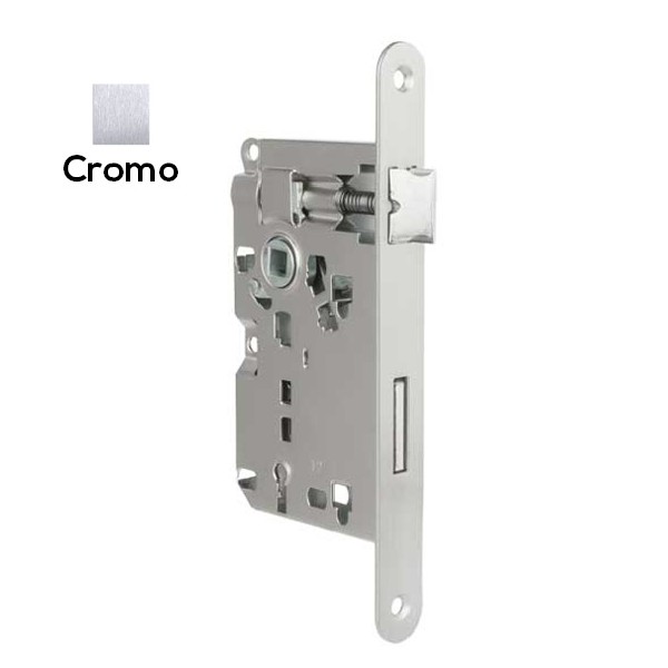 Cerradura U202 embutir, con llave de gorja simple, frente redondo niquelado.