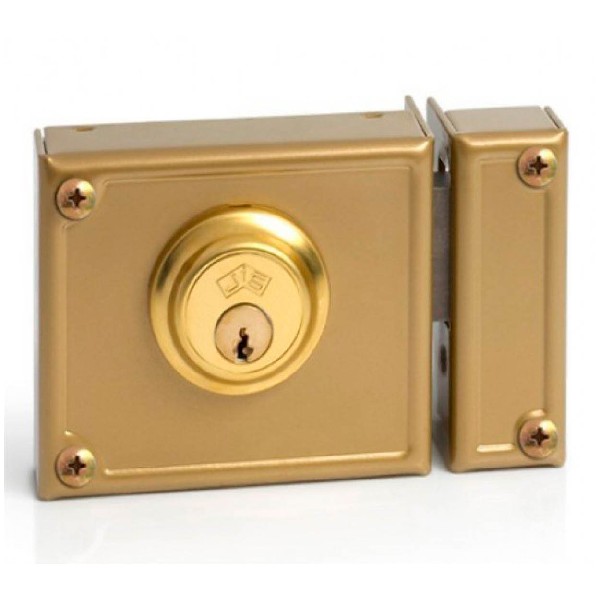 CERRADURA JIS 11-10 PINTADA DORADA IZQUIERDA. SOLO LLAVE .Acabado pintado dorado. Modelo no reversible: mano derecha o izquierda. 3 llaves de alpaca. Cilindrofijode 52 mm.