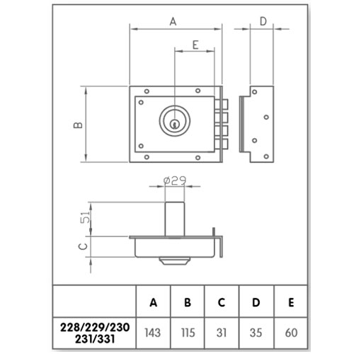 CERRADURA JIS 231 PINTADA MARRON IZQUIERDA