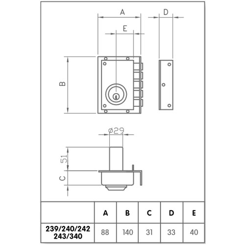 CERRADURA JIS 243 PINTADA MARRON IZQUIERDA