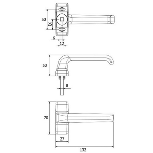 Juego de manillas ambidiestro con 4 agujeros de fijación.