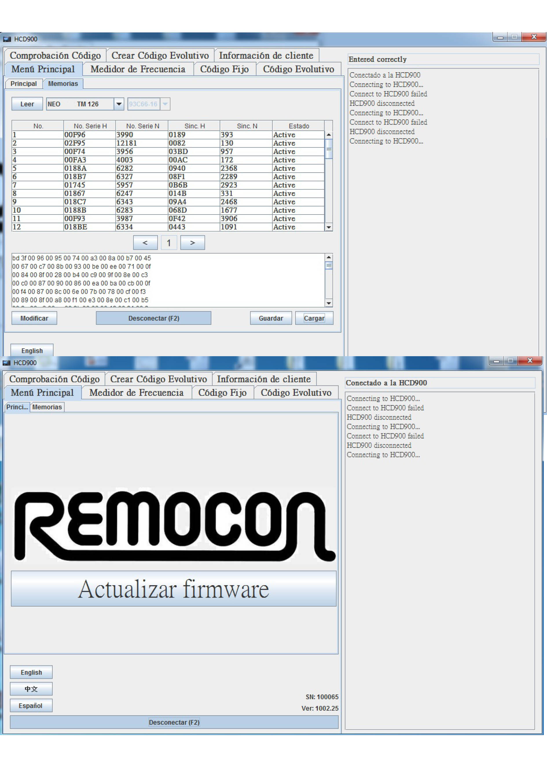 A través de este módulo es posible leer la memoria de receptores de los fabricantes más comunes, dispone de conexiones para la lectura de MUTANCODE, ERREKA, NICE BM, JCM NEO, JCM GO y AERF.