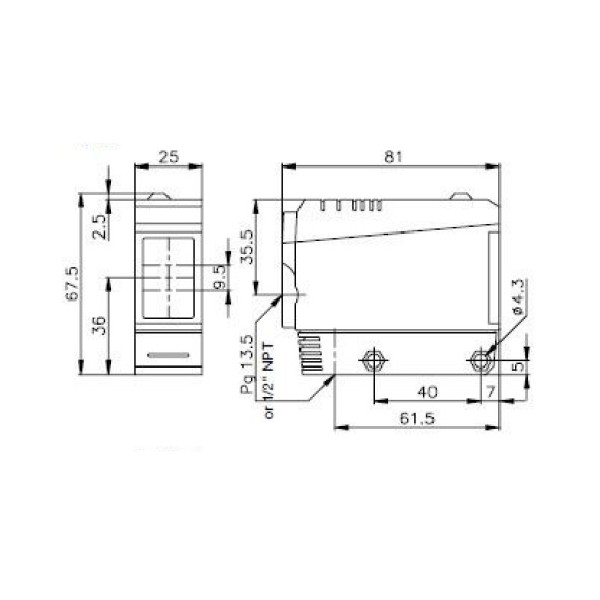 Caja reforzada de PC/ABS, 25 x 65 x 81 mm, IP 67