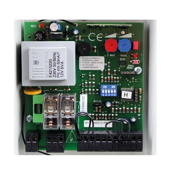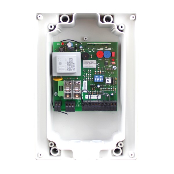 Cuadro de maniobra alimentado a 230V con radio integrada diseñado para motores de puertas enrollables.