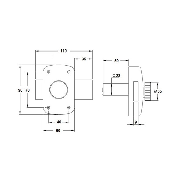 – Llave exterior y pomo interior