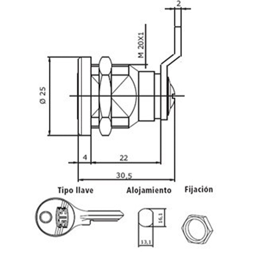 CERRADURA BUZON ROSCA STS 610-020 180º Ø20 L38D8 ORO