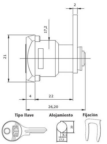 CERRADURA BUZON DE CLIP STS 610-027T 180º Ø17,5 L35 CR
