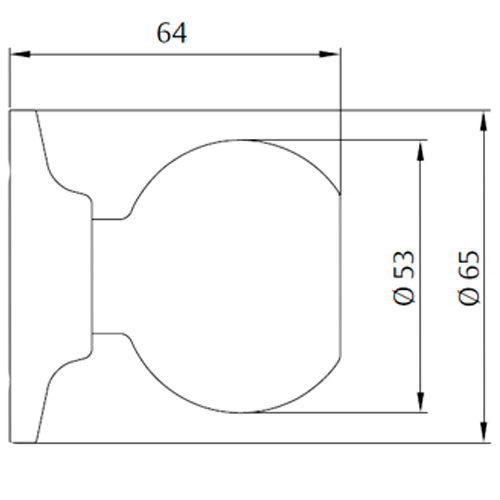 Pomo de 53 mm y base de 65 mm de diámetro.